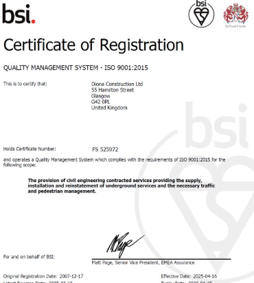Full civil engineering services including excavations, ducting, foundations and reinstatement.